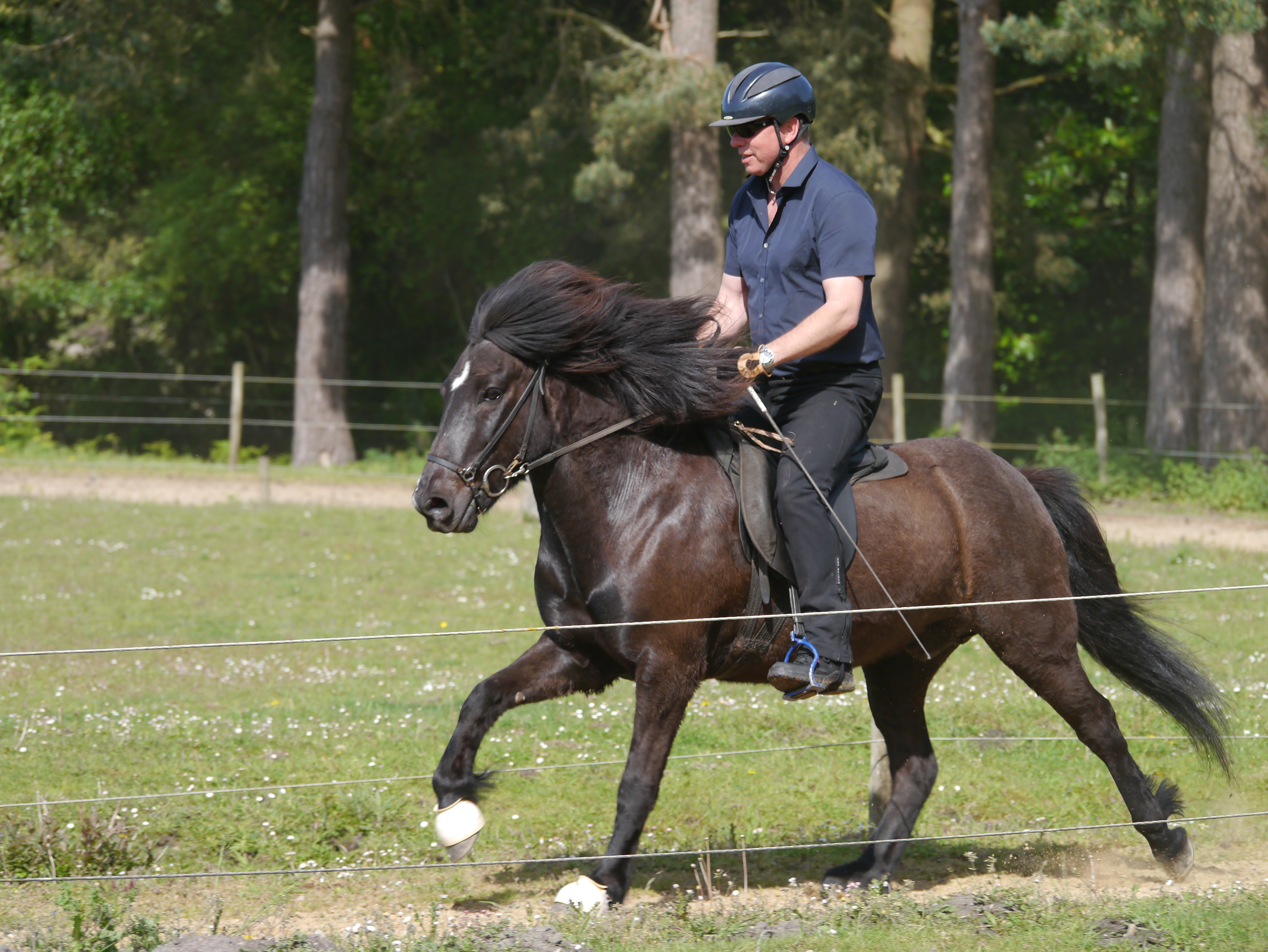 We decided we needed to know more about Fleygur and contacted his breeder for help, We booked a lesson with Janice Hutchinson at Siamber Wen Icelandic’s where we discovered that Fleygur had always had a good tölt, and that he use to have a nice trot too, though we had not been able to find it up to that point, but we also found out that he had always been an anxious type of horse. It appeared that Roger was right, he was a ‘good stamp of a horse’, but he did have issues!